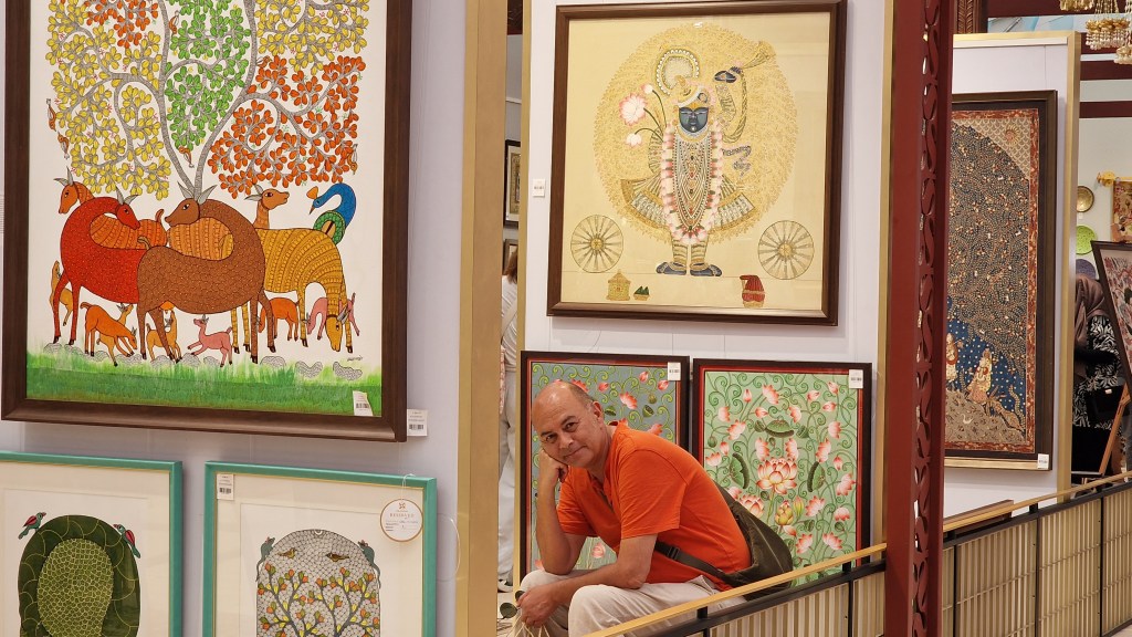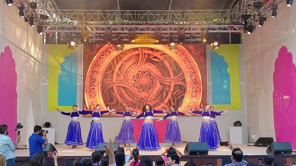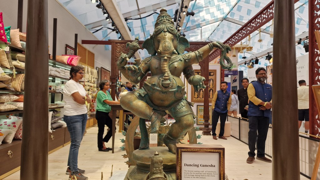 From patachitra to brass objects, passing by luxurious percale, upholstery, sarees, and carpets, the standalone boutique has brought every single treasure of India under one roof. Now, whether the pavilion itself, where people are mostly drawn to food and Hormudz Khambata’s Bollywood Troupe’s magnificent performance, is the right place to showcase exquisite artefacts of India is a question that lingers in my mind.